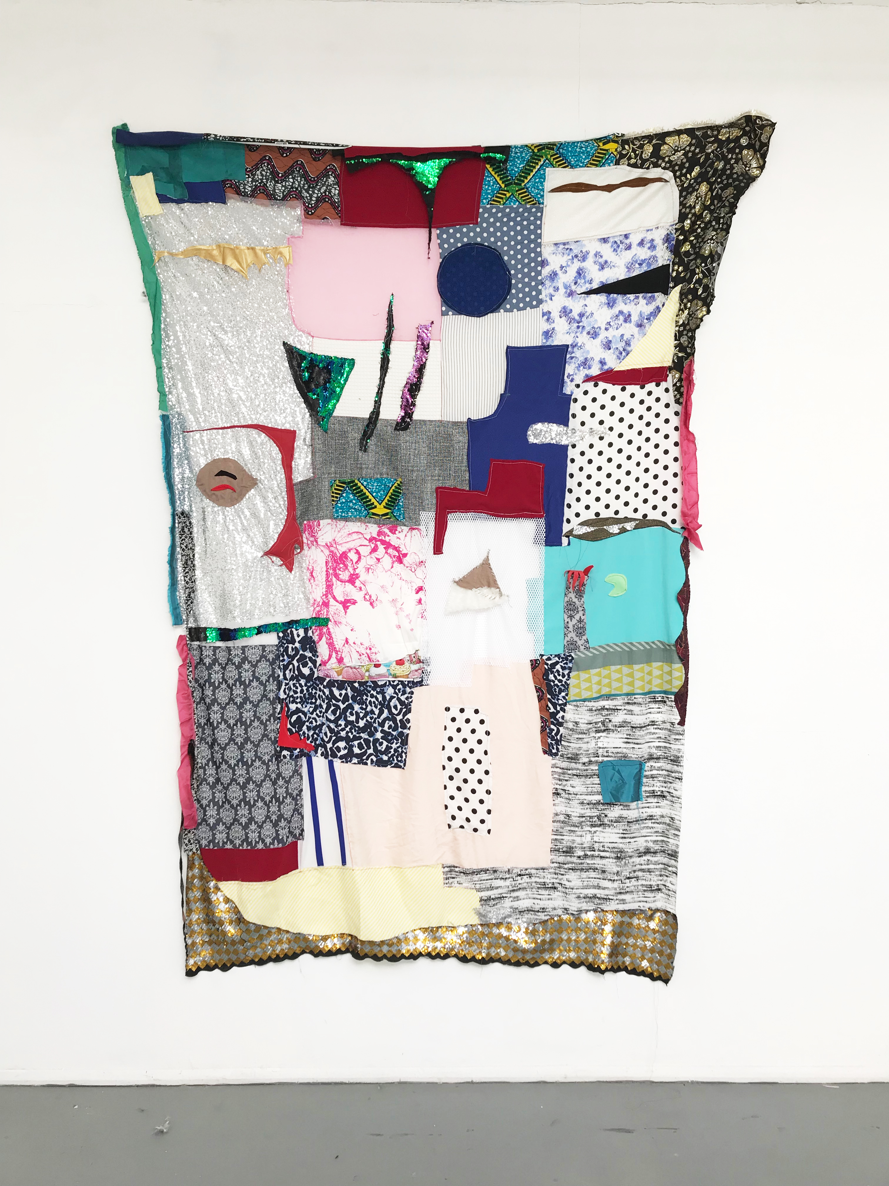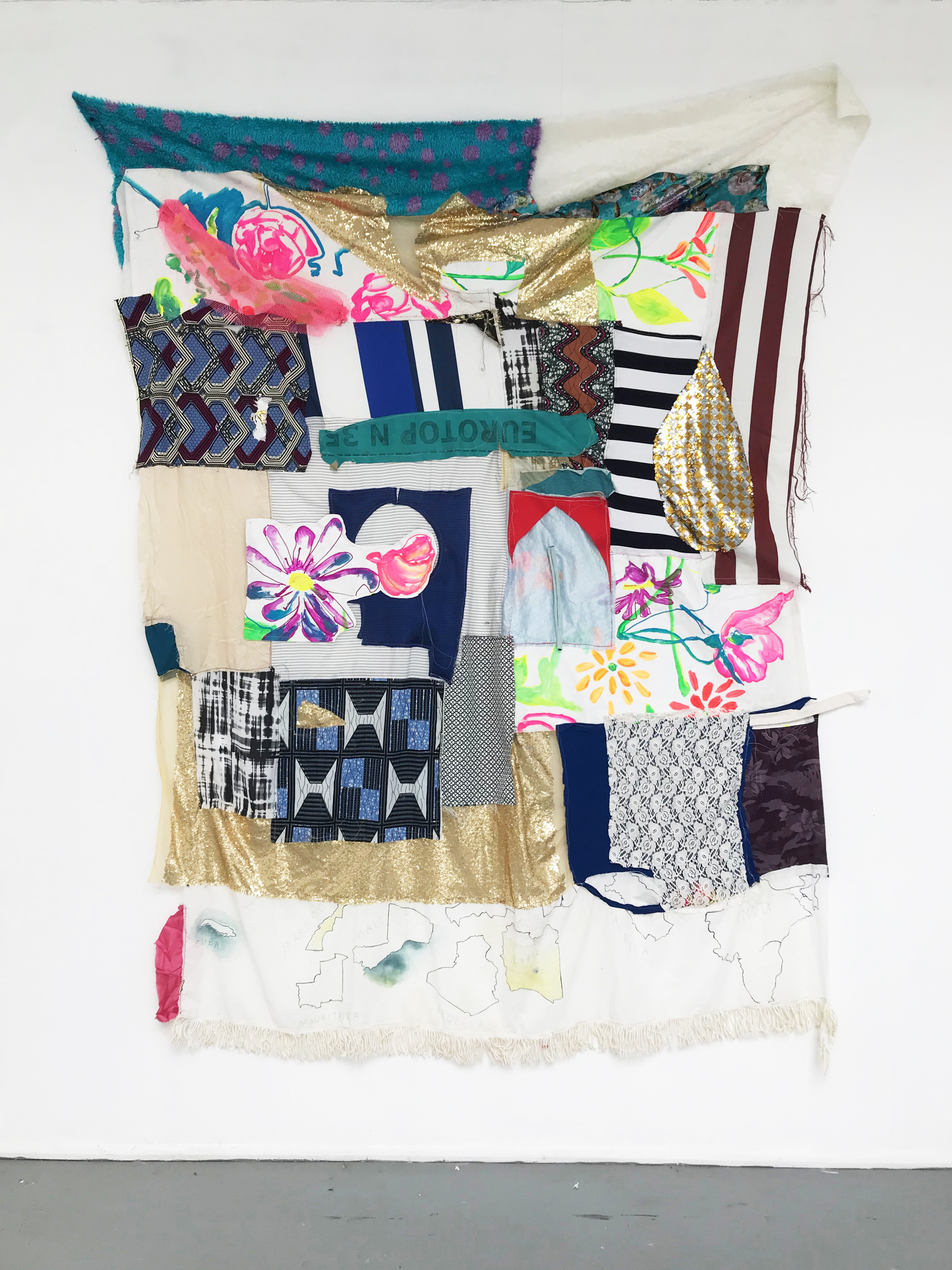 Summer blues, mixed textiles, 180 x 120 cm, 2019